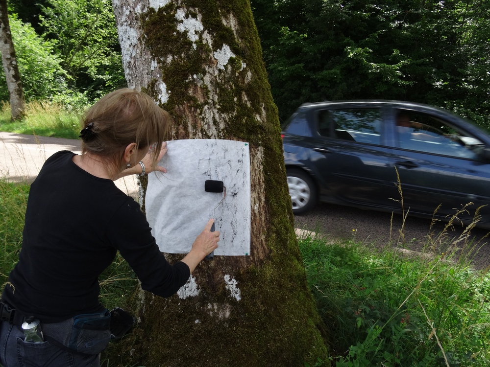 Les 25 et 26 juin, l'artiste Constance Fulda est revenue compléter les empreintes déjà réalisées les années précédentes. Au total, Constance a ainsi déjà réalisé 113 empreintes, qui représentent à peu près la moitié de l’œuvre finale, et un linéaire de 56,50 m. Six des empreintes réalisées, correspondant à des arbres abattus en 2022, sont dès aujourd’hui le seul vestige tangible de ces frênes.